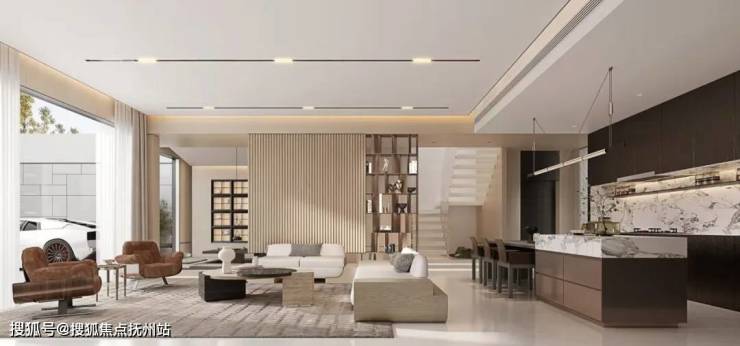 约7.4米互动方厅,承载生活尊荣仪式感社交客厅,洄游式餐厨系统,景观院落三位一体,实现一体化方厅格局。