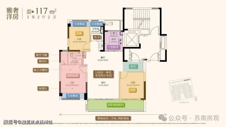 117㎡三房:通透双联阳台,独立玄关,经典四角户型