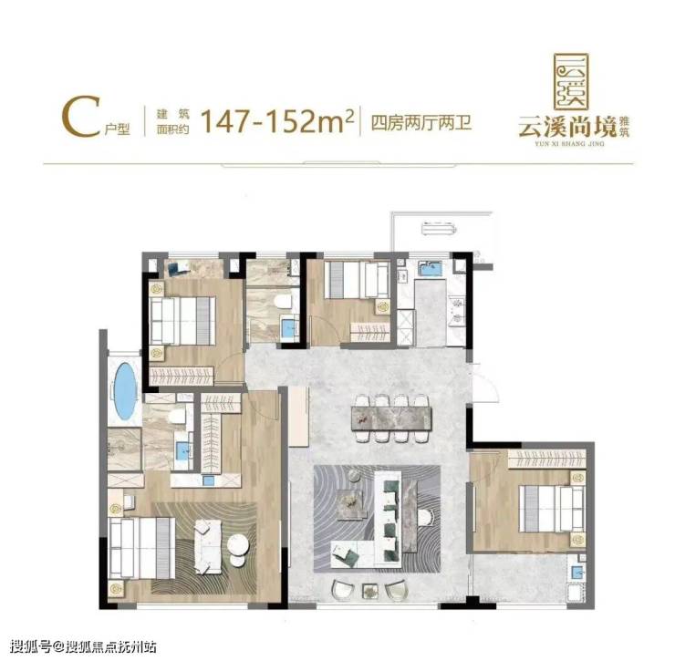 约147㎡王炸户型——4房2厅2位,近14.5米大面宽满足生活大师对日常的一切想象