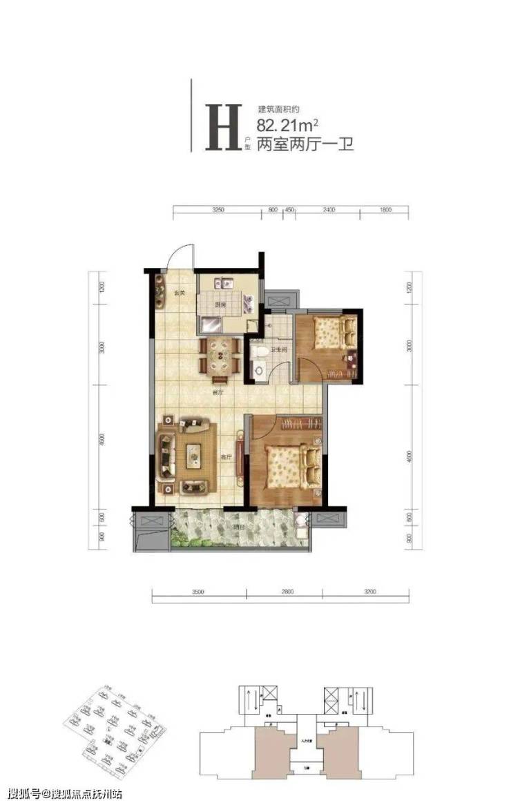 H2户型建面约82.21平,两房两厅一卫:这是非标准层户型,仅1、2楼的中间户,一共只有4套。此户型还是比较方正的,两开间朝南,布局紧凑,总价也仅70多万,门槛低。
