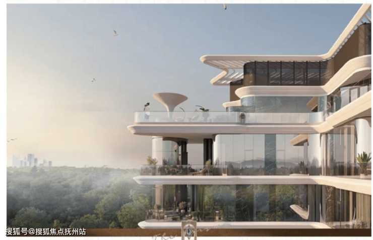 在立面形态上,打破天地的平面想象,告别砖石的沉重,将建筑美学与生活奢享深度融合,以"垂直立体"的流瀑五叠设计,让建筑如水流般层层递进、光影通透。更难得的是,流瀑五叠并非只为视觉服务,更是为每一层创造不同的观景视角和光影体验,让每一户都拥有独属自己的那一抹天光。