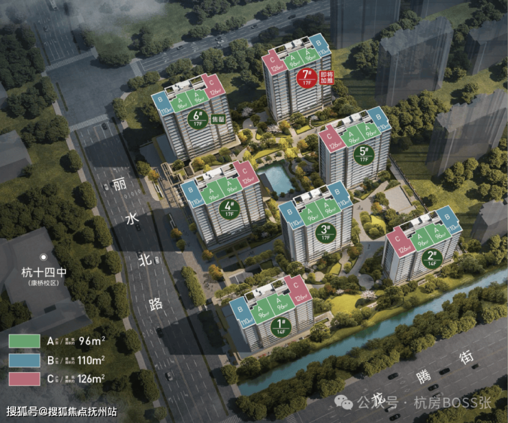 1公里环绕式学校:杭州第十四中(康桥校区)一路之隔。项目斜对面即杭州第十四中学附属学校(九年一贯制)。新城实验第二幼儿园、杭州市文渊小学(新城校区)、新城实验幼儿园,均在直线距离约1公里范围内,主城区完整式教育链无需“二次迁徙”。(以上内容仅供参考,不作为学区承诺,具体教育信息以政府教育部门政策为准)