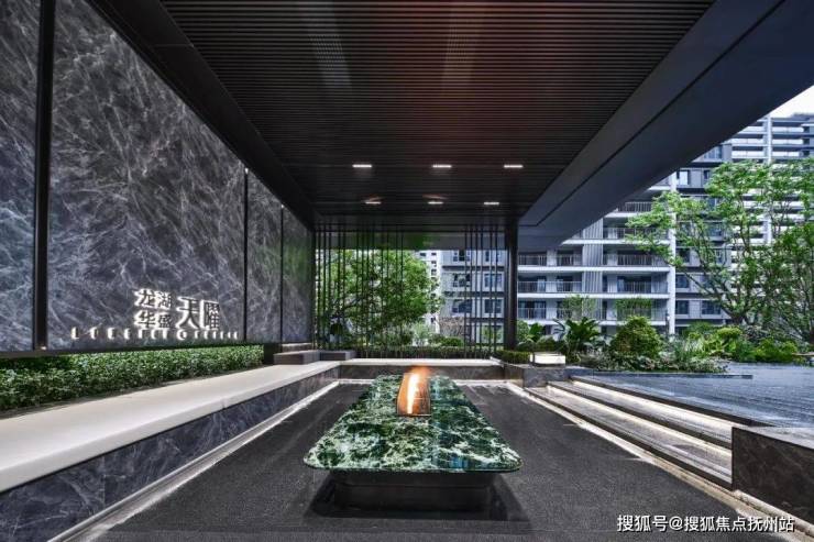 无论是门头烫金醒目的案名,还是两侧修剪齐整的罗汉松,亦或是汩汩涌动的水景,都透露着不动声色的矜贵。