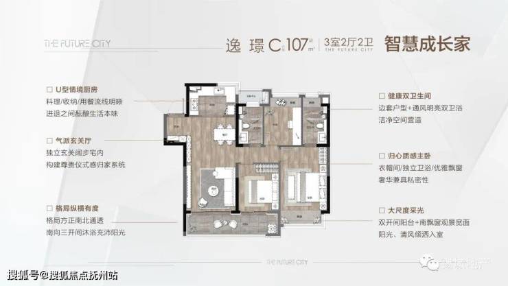 逸 璟 | C户型 | 建筑面积约107㎡ | 三室两厅两卫