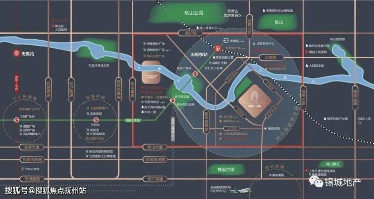 枢纽中心:苏南硕放机场、无锡高铁东站、锡张/锡通高速公路、地铁2号线、新华路高架等多维立体交通环伺,50分钟长三角生活圈;