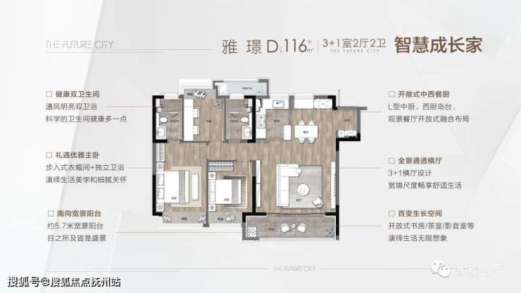 雅 璟 | D户型 | 建筑面积约116㎡ | 3+1室两厅两卫