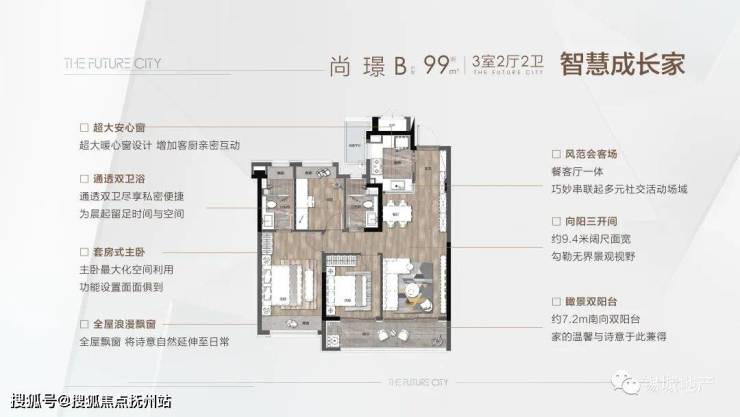 尚 璟 | B户型 | 建筑面积约99㎡ | 三室两厅两卫
