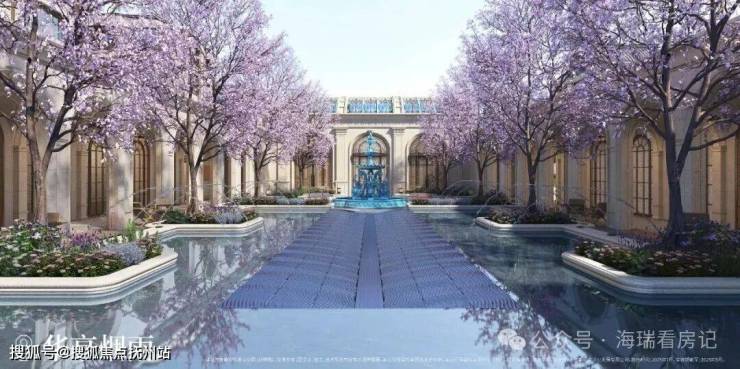 以水为引,起承转合,以海天华堂、华亭烟雨、凤亭问泉,清涟夜月、黄浦秋涛等景观组团,悠然铺陈东方院落式归家礼序。