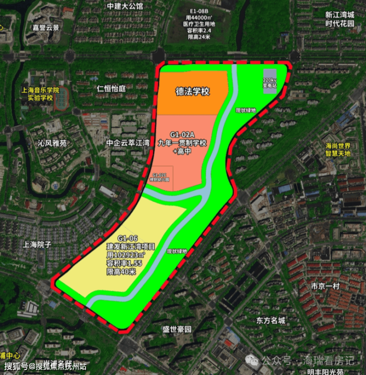G1-06地块容积率约1.55,限高约40米,土地面积10.29万㎡,建筑面积约15.95万㎡,出让总价高达86.5亿元, 折合楼板价约5.42万/㎡,住宅套数下限为1156套,体量磅礴。