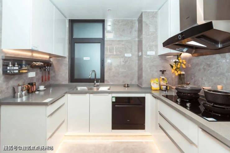 厨房U字型设计,适合两人及以上同时烹饪,现代厨房配置老板、方太双腔设计油烟机、灶具及洗碗机,摩恩厨盆、龙头和科勒前置净水器,奥普凉霸,更有欧派、博洛尼、金牌收纳柜体(以上均或同等品牌)等生活细节设置,引领厨房品质生活,感受居家烹饪乐趣。
