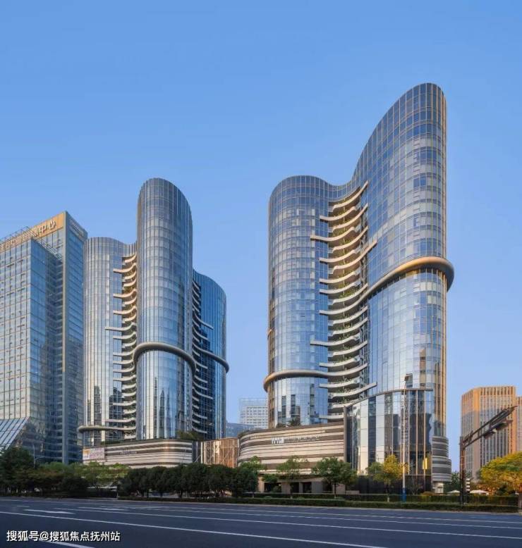 - 建筑形态:双子塔楼,以“三叶草”为原型设计,外立面采用深蓝色玻璃幕墙与金属线条[[1][4][6]。