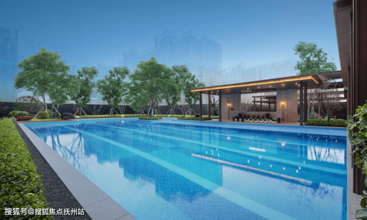 家楼下的星空泳池,倒映着天光云影,漫步于园林之中,阳光草坪无处不在,清风阳光下,树木掩映间,儿童乐园、微汗跑道等功能分区点缀其中。