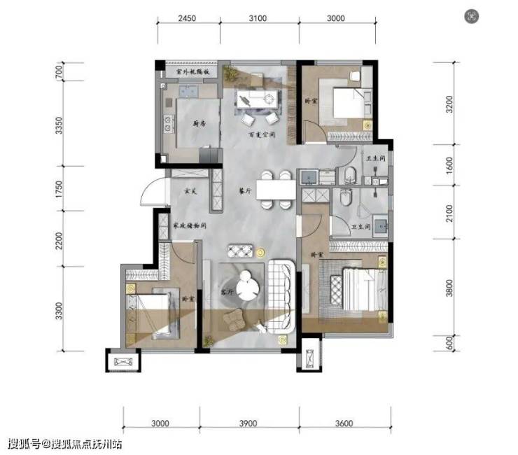 对于首置或改善的年轻家庭来说,约89㎡高层户型堪称教科书级设计: