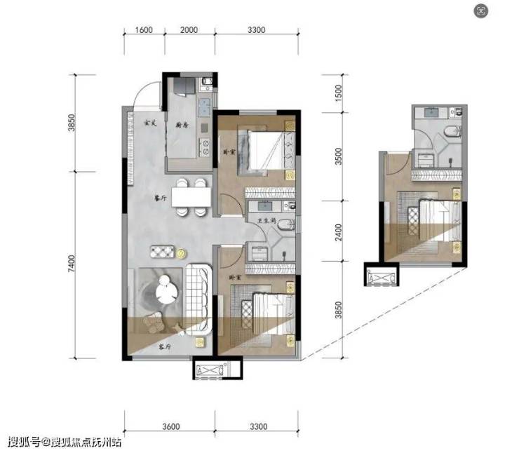功能完整,两室两厅一卫,满足小家庭所有生活场景