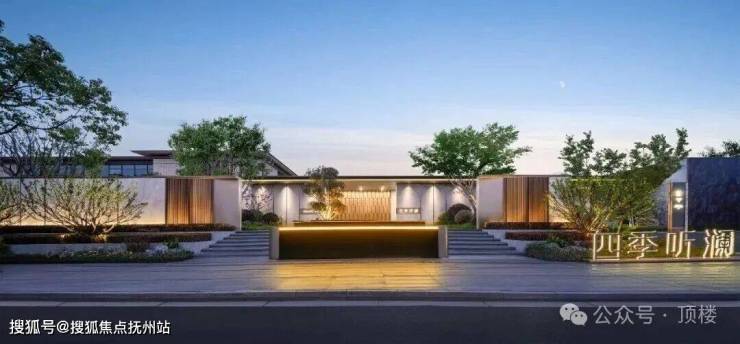 约37米恢弘府门,第一眼气场全开:融合东方礼序与现代线条,用仿石砖、金属格栅与灵动水景,铺就气势十足的归家序幕。