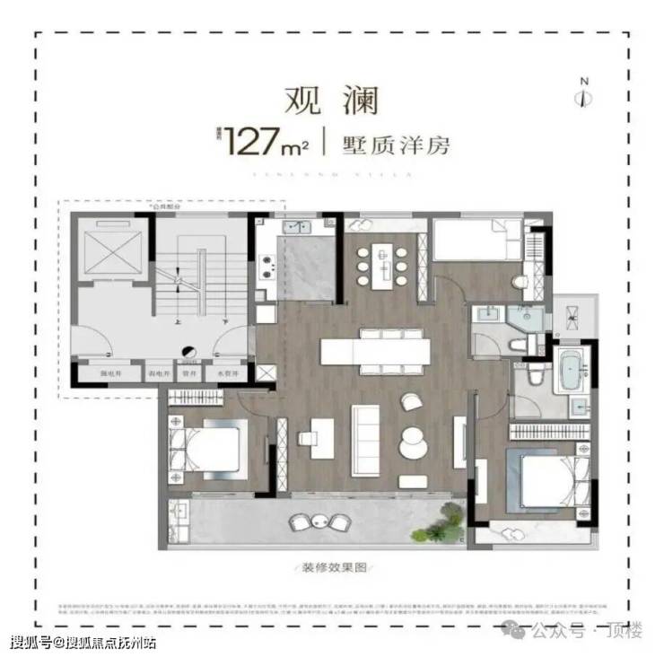 四季听澜的洋房,本质是一场“空间革命”。约 84%得房率,让建面约127㎡户型成功实现“3+1房”灵动布局,尺度体验可媲美160㎡大平层。