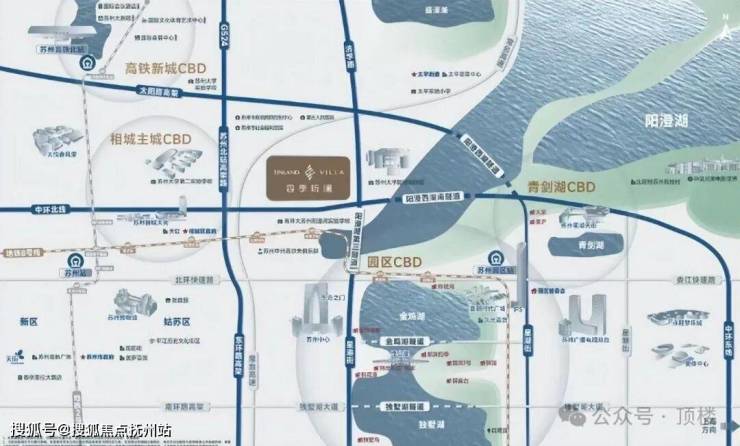 ①四大CBD黄金交汇点:傲踞园区、青剑湖、相城主城、高铁新城四大核芯CBD黄金交汇点,四大板块势能叠加,集城市资源富集度与生态宜居性于一体,成为塔尖人群竞相争藏的价值高地。