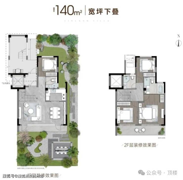 其中下叠产品,充分实现庭院革命,让生活“长”在自然里, 270°三面围合庭院,宅景比例超过1:1。这不再只是“有院子”,而是让庭院成为家庭生活的核心现场。约7.3米南向大横厅搭配全景落地窗,实现室内外交互的无界对话。