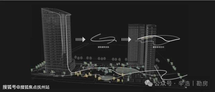 项目在整体规划上以“高山流水”为设计核心理念,以半包围式建筑结构创造“珠玉落玉盘”之形,打造“三境十二序”景观节点,汇聚大武昌天元雅韵之风。