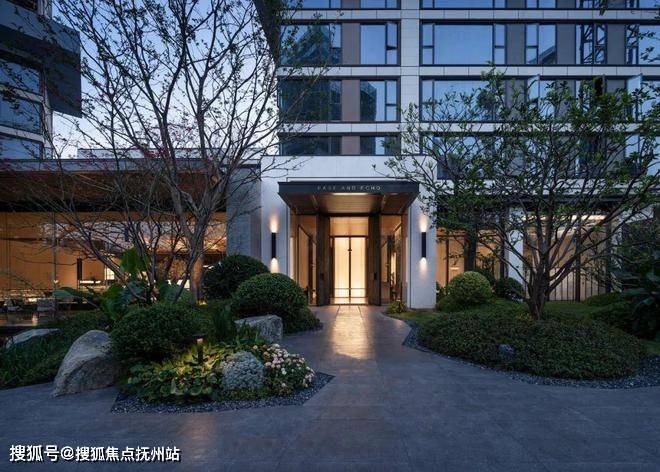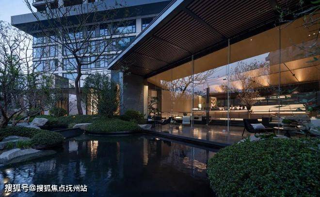 在涧山观奕的实景展示区,千吨原石的私园、无界自然水院、风雨连廊、叠瀑流水、珍稀乔木、18米玻璃幕墙的水吧、健身空间与儿童书房,无界交融,大隐于市。