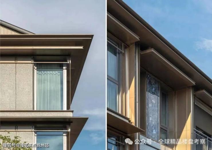 芳菲澜院的建筑细部,以石为骨、以光为序。窗墙比例简洁克制,金属与玻璃交织出通透明亮;铜质收边与石材肌理相映成趣,延续东方匠心。挑檐微光铺展,门廊格栅取意苏式窗棂,光影流转间含蓄低语。每一寸细节,皆化为温度,让归家成为诗意的礼遇。