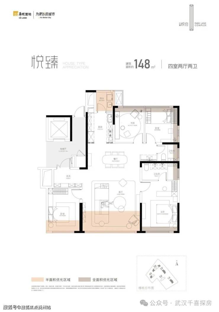 1.户型分布:建面约148-172㎡