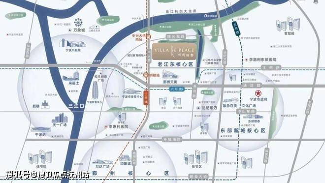 两路两轨,无界都会。身居城央,两路两轨通达四方:沿通途路西达三江口,东达接海曙;沿中兴路南达鄞南核心区域,北达文创港片区。