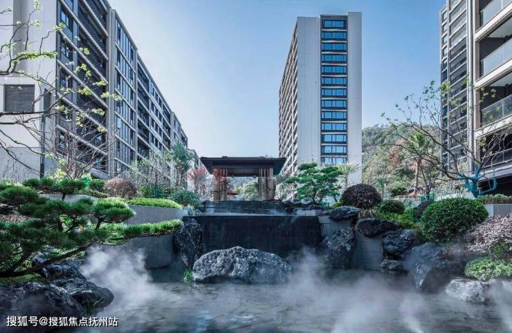 入口处"金石水月"雕塑,将人文与自然定制成家门口的艺术。