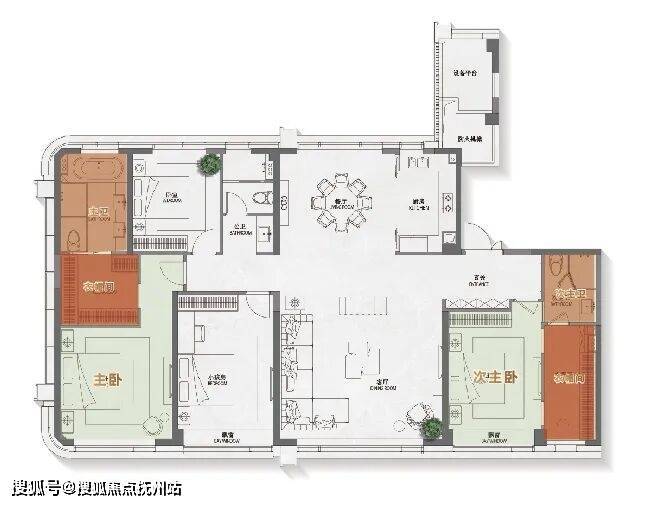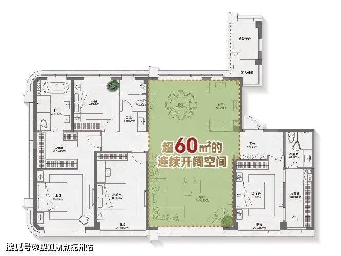 如此令人惊叹的平面尺度,足以支撑奢阔的横向布局。堪比一线平层别墅的基地,将充沛的阳光、流动的城市风景,毫无保留地迎入室内。