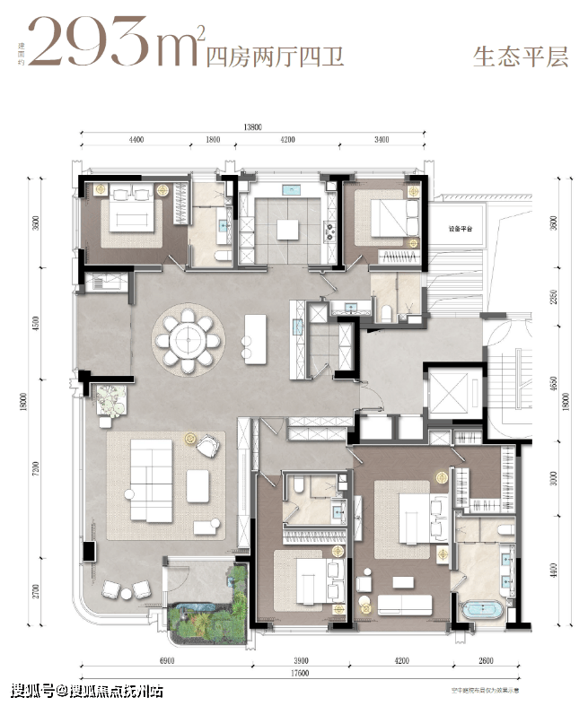 重点分享一下即将首开的约293㎡南区空中楼王户型,关注两点。