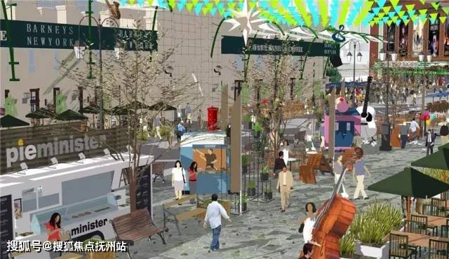 于是,我们通过不同定位的广场、街道的氛围营造加强主要节点的汇聚人流功能——