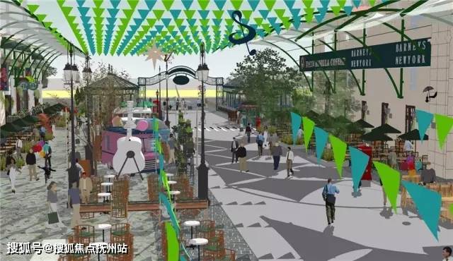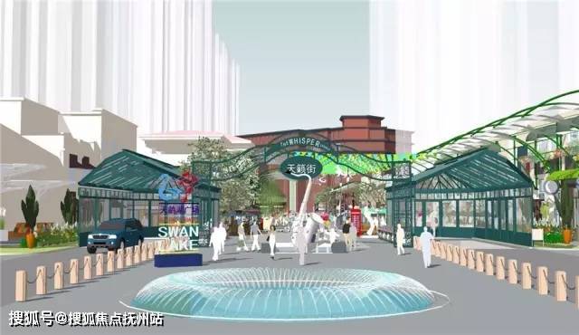 入口广场是项目的主要展示面,彰显“音乐小镇”的文化特色,打造项目精神堡垒,并辅以大量氛围营造美陈景观,提高视觉吸引力,强化入口感,吸引过往人群进入。