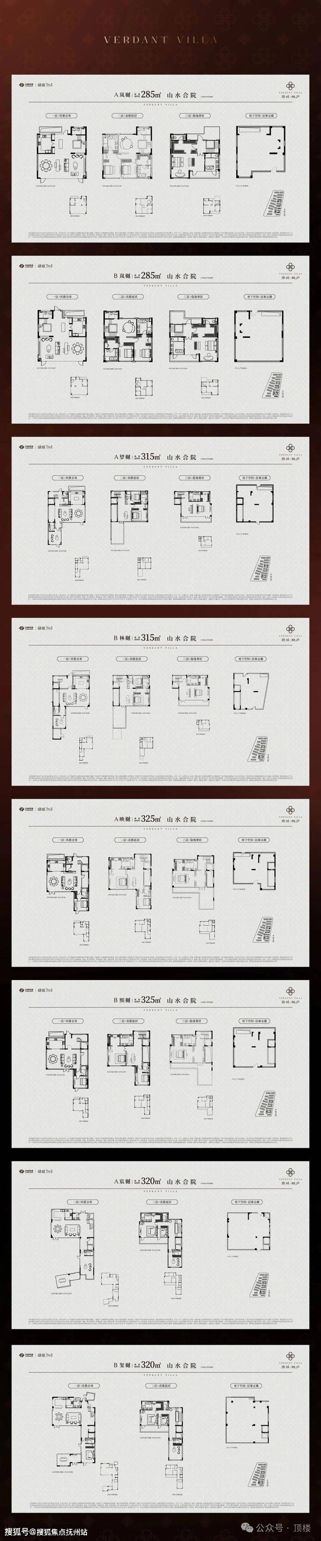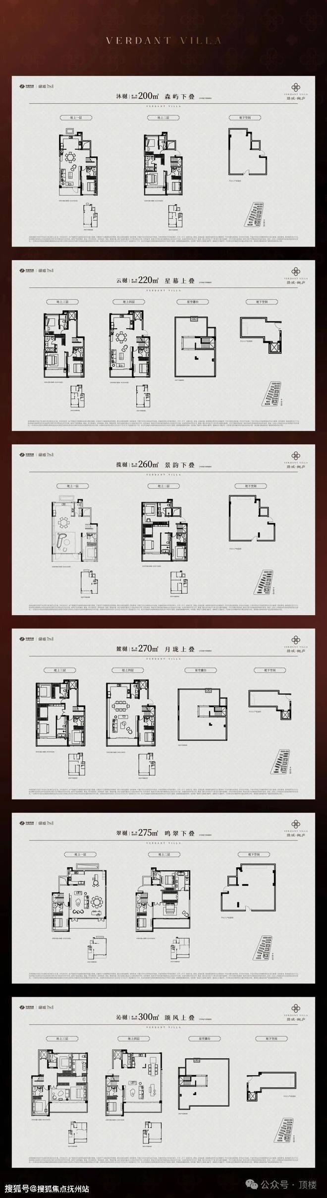 •整体规划打造建面约285-325㎡山水合院(2-3F)、建面约200-300㎡诗境叠墅(4-6F)