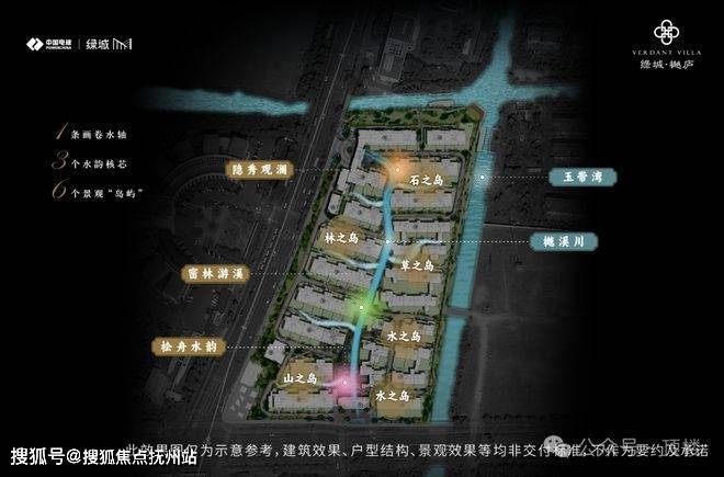 绿城·樾庐外部打造约500米长水岸绿带「玉带湾」,呈现可漫步、可停驻、可社交的诗意栖居场域。内部以一条水轴「樾溪川」构筑当代园林系统,并划分两大业态组团,同时以支脉水系分割,形成岛屿化组团,在水境空间中勾勒流动的静谧体验。