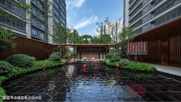 充满仪式感的归家轴线空间,水景、树阵造景与花园景观优雅相融,每一步都是葱茏诗意,温暖而沁心。