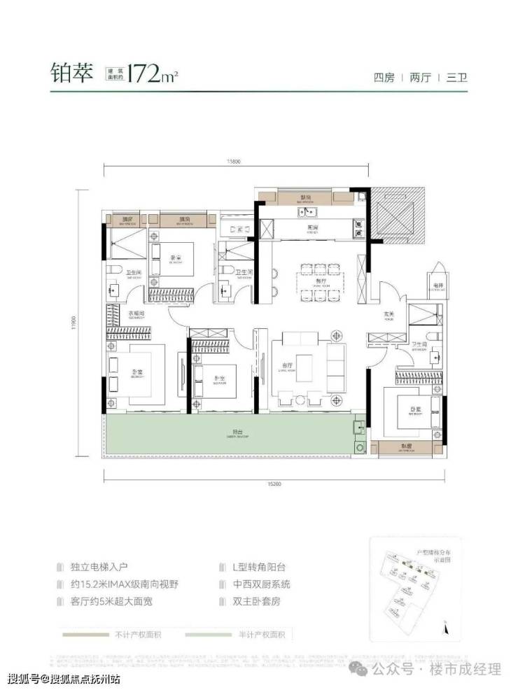 极致洋房:奢阔大四房,跑道级阳台、LDKG一体化超厅、超90%高得房率