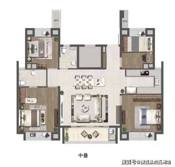 所有叠加的卧室和客厅均朝南,采光和通风效果极佳,尺度宽敞,视野开阔,方寸之间尽显优雅生活。
