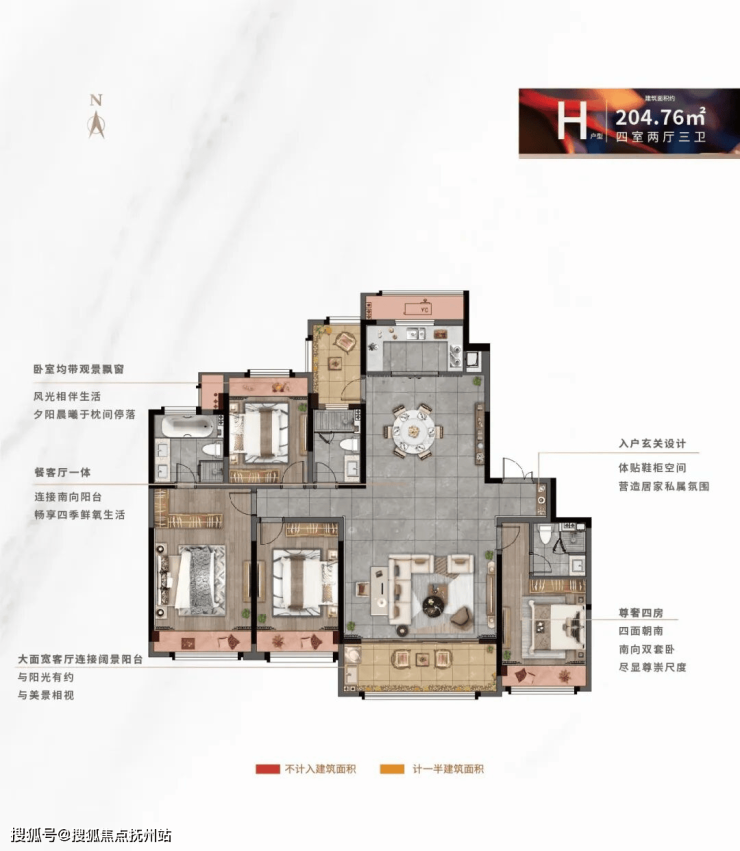 建面约205㎡宽境平层,敬献龙城