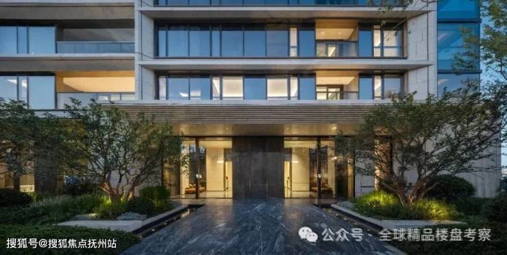 元起观潮府高层建筑立面材料以仿石铝板+大面玻璃为主,房间层高3.3米。
