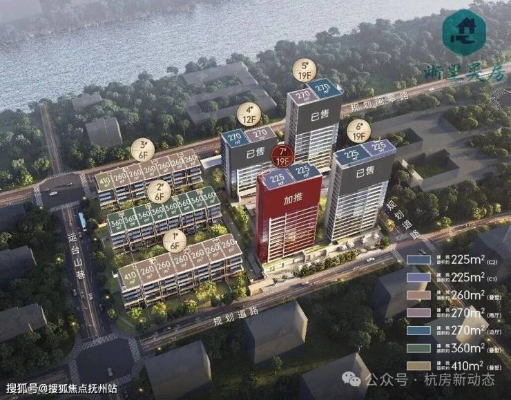 高层底部设有架空平台,整体抬高6米,再加上5.7米的架空层,整体架空高度合计约12米。