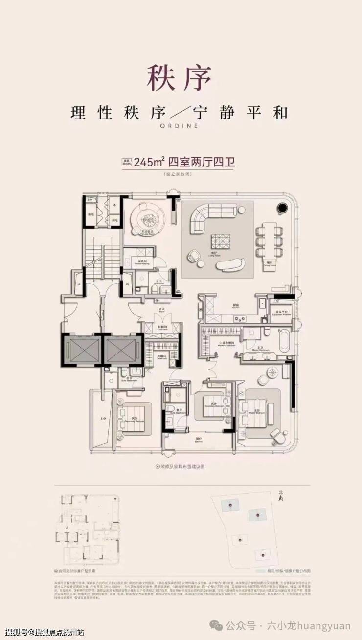 245㎡户型:四房两厅四卫,CCD郑忠设计,270°转角厅引运河入室,层高3.3米