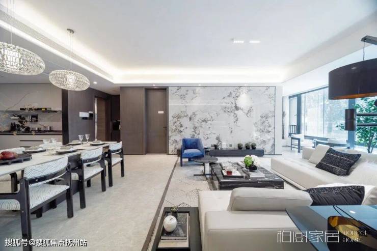 采用“LDKB一体化+灵动空间+动静分区”的户型空间。餐厅与客厅分而不割,互相渗透,在自由的空间中形成家庭社交空间。
