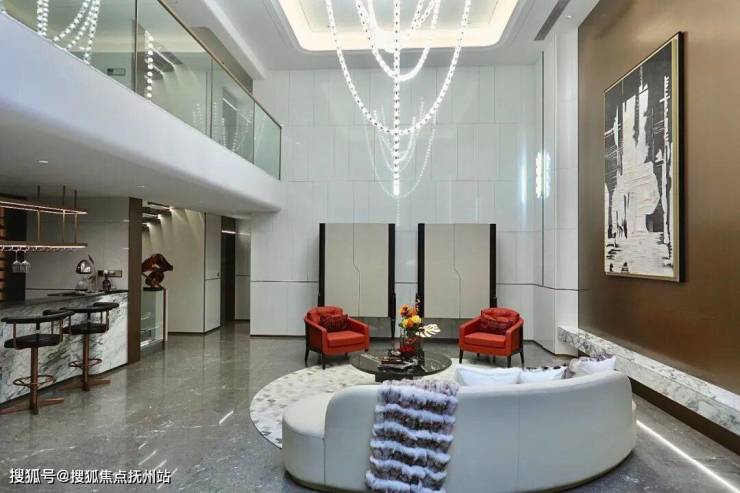 约5.8米挑高地下室,异于常规地下室带来的压抑之感,「雲墅」的超高地下挑空与阔达的空间享受,打造法式悠闲之境,彰显峯层领袖的气度非凡。配以精致的吧台及红酒柜,生活体验感拉满。