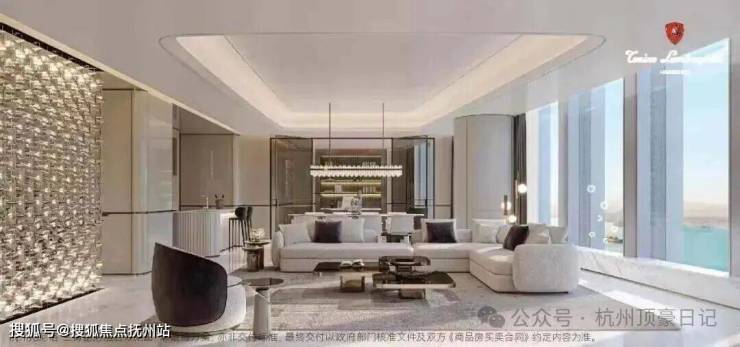 第一重颠覆:把超跑基因刻进建筑DNA 当其他豪宅还在模仿奢侈品元素时,瑰郦中心直接请来兰博基尼家族做设计合伙人。裙楼托尼洛·兰博基尼酒店的血统纯度,堪比超跑界的限量版。那套价值千万的菱格纹夜景立面系统,每块金属板都经过37道激光切割,在钱塘江夜幕下折射出超跑尾翼般的流光溢彩。走进大堂的瞬间,2万/平的装标化作视觉盛宴:土耳其白砂岩的肌理与意大利卡拉拉白奢石的冷艳交织,前台散热鳍片造型的金属装置,分明是兰博基尼V12发动机的艺术转译——这哪里是入户大堂?分明是超跑博物馆的沉浸式展厅。