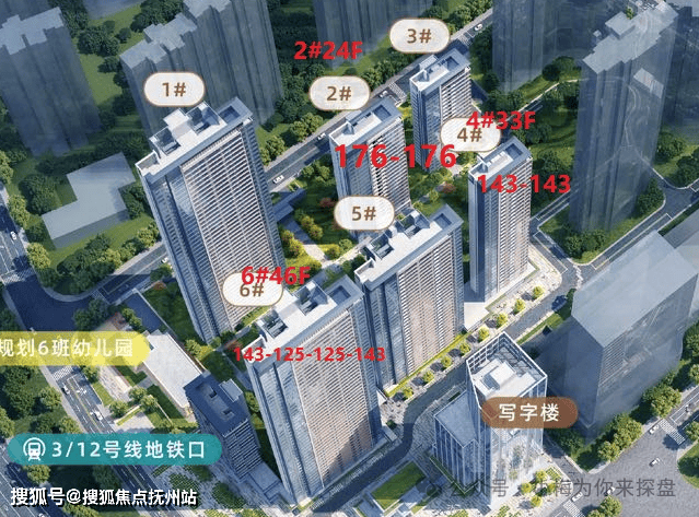 小区一共6栋房子,备案查到目前1栋已经全部卖完了,6栋去化了70%房源,(3,5栋还没卖)目前主要房源集中在2,4,6栋。6号楼共46层,3梯4户,包含建面约125-143平房源;4号楼共33层,是2梯2户的板楼,都是建面约143平房源;2号楼共24层,是2梯2户的板楼,标准层都是建面约176平房源。
