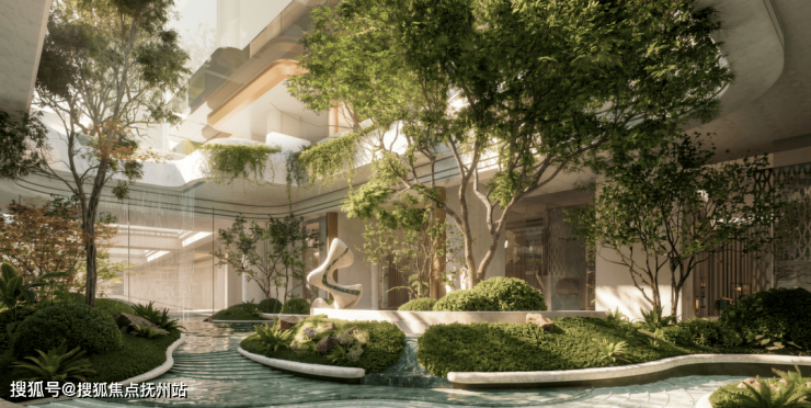 通过微地形、水景与植物层次的精心组合,让自然、艺术与生活相互融合,使居者在城市中感受到森林般的松弛与安宁。