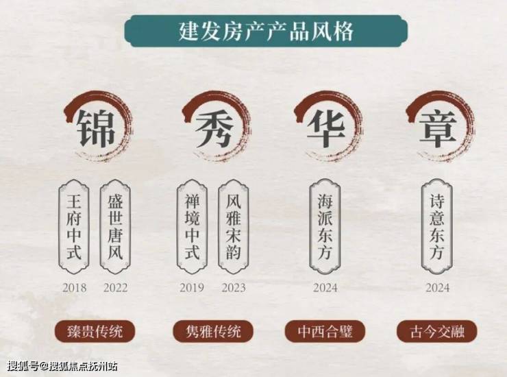 建发先后发布了多款不同风格的新中式产品,在全国70多个城市落地开花;为了重塑“好房子”体系,建发房产将原有的六款新中式产品凝练为「锦·秀·华·章」四大产品系列: