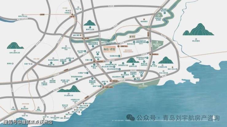 优教环伺:项目东侧规划幼儿园、小学、中学,一站式配套教育。新世纪幼儿园、金钥匙幼儿园、崂山区育才学校等环伺周边(项目周边的学校信息仅作为信息参号,不作为入学承诺,最终入学条件根据政府学区划分政策为准)