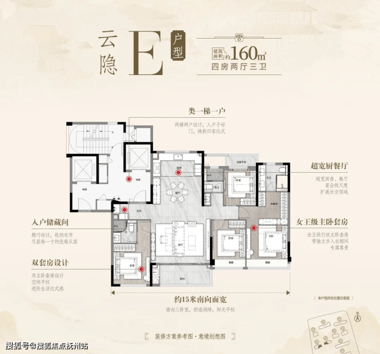 1、类1梯1户,私密入户(独享4~6㎡独立电梯前室)