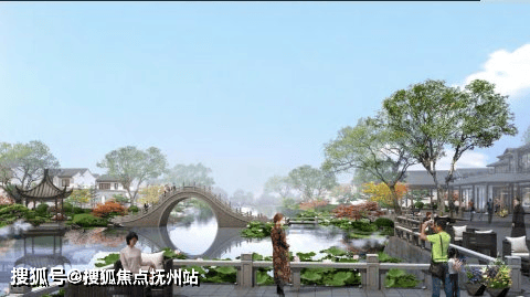 以六塘河支流为中轴,水系之上匠筑一座二十四桥,西岸营造开放式的江南水街市集,东岸荷花塘浪漫诗意。绿城家人们在这里寻觅知己,抬眼间是六角亭下闲谈对弈的邻里,是闲步廊檐下拍照打卡的汉服爱好者,是河畔一盏清茶品鉴中式糕点的游人。